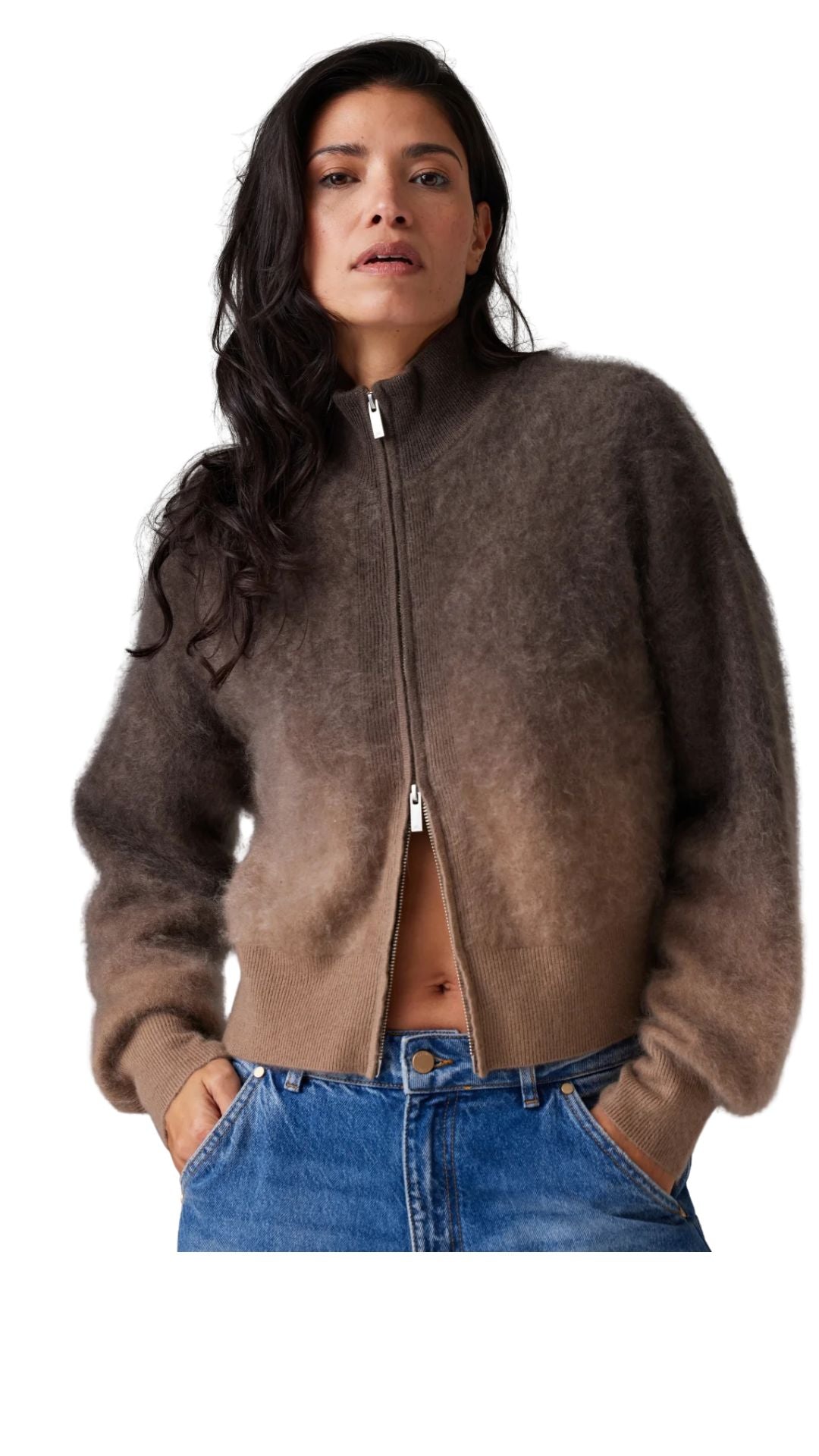 Toto is a bold, badass babe, brushed in softness. This 100% cashmere jacket plays with depth and color in its dip-dyed design, making every piece subtly unique. Plush, warm, and unapologetically high-end, she’s the knit you throw on when you want your outerwear to make a statement.