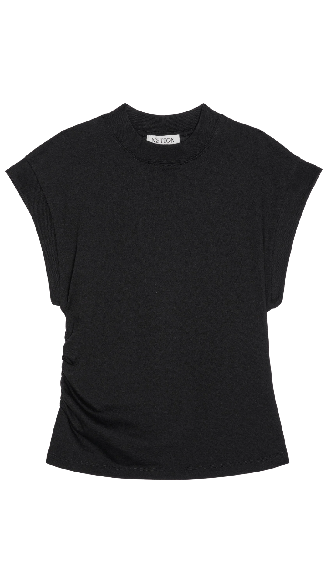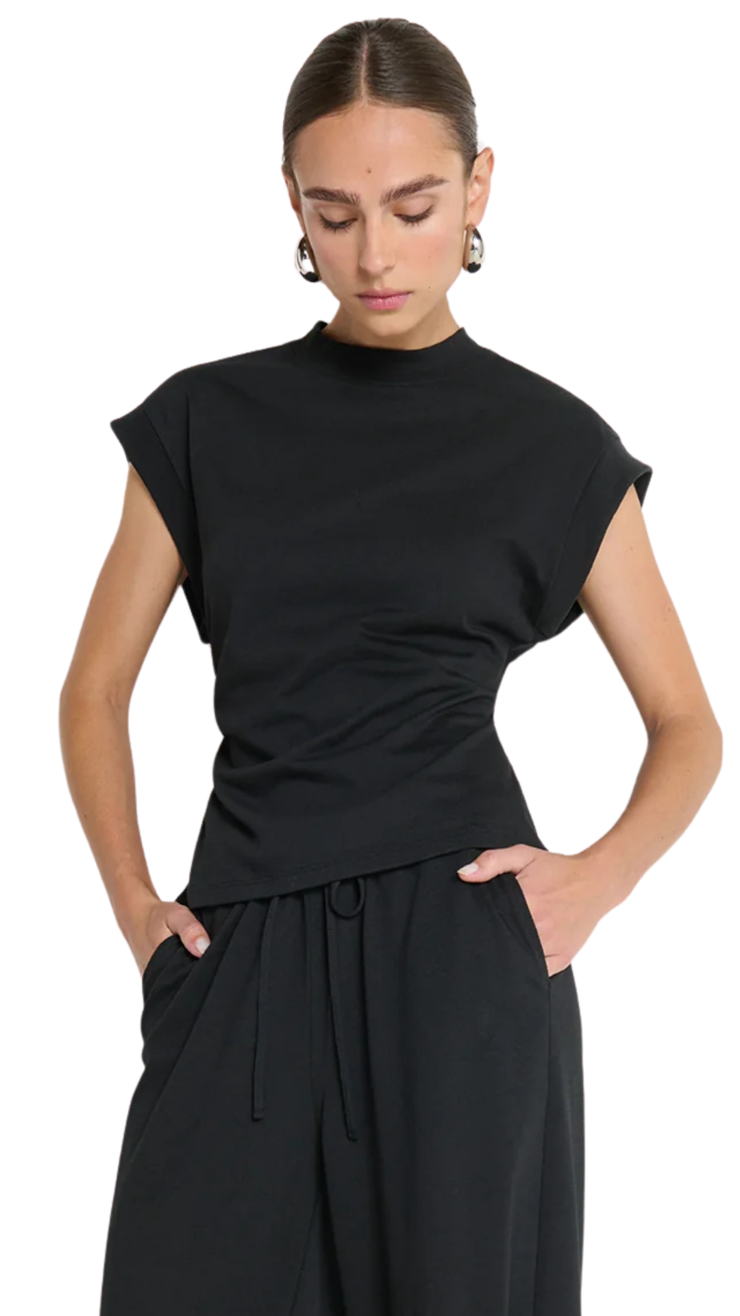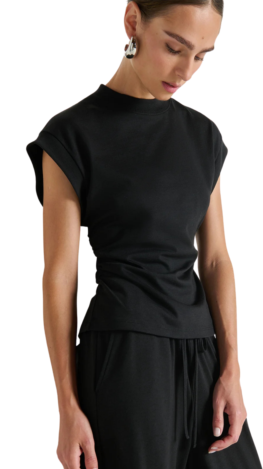 A study in balance. The Andrea Side Shirred Top is equal parts edge and softness, with a heavyweight knit that drapes with intention, and side shirring that adds subtle shape and movement.