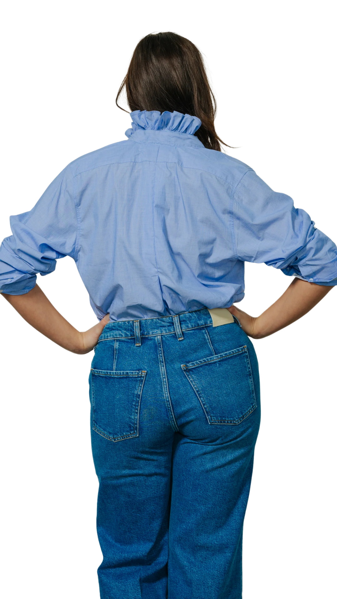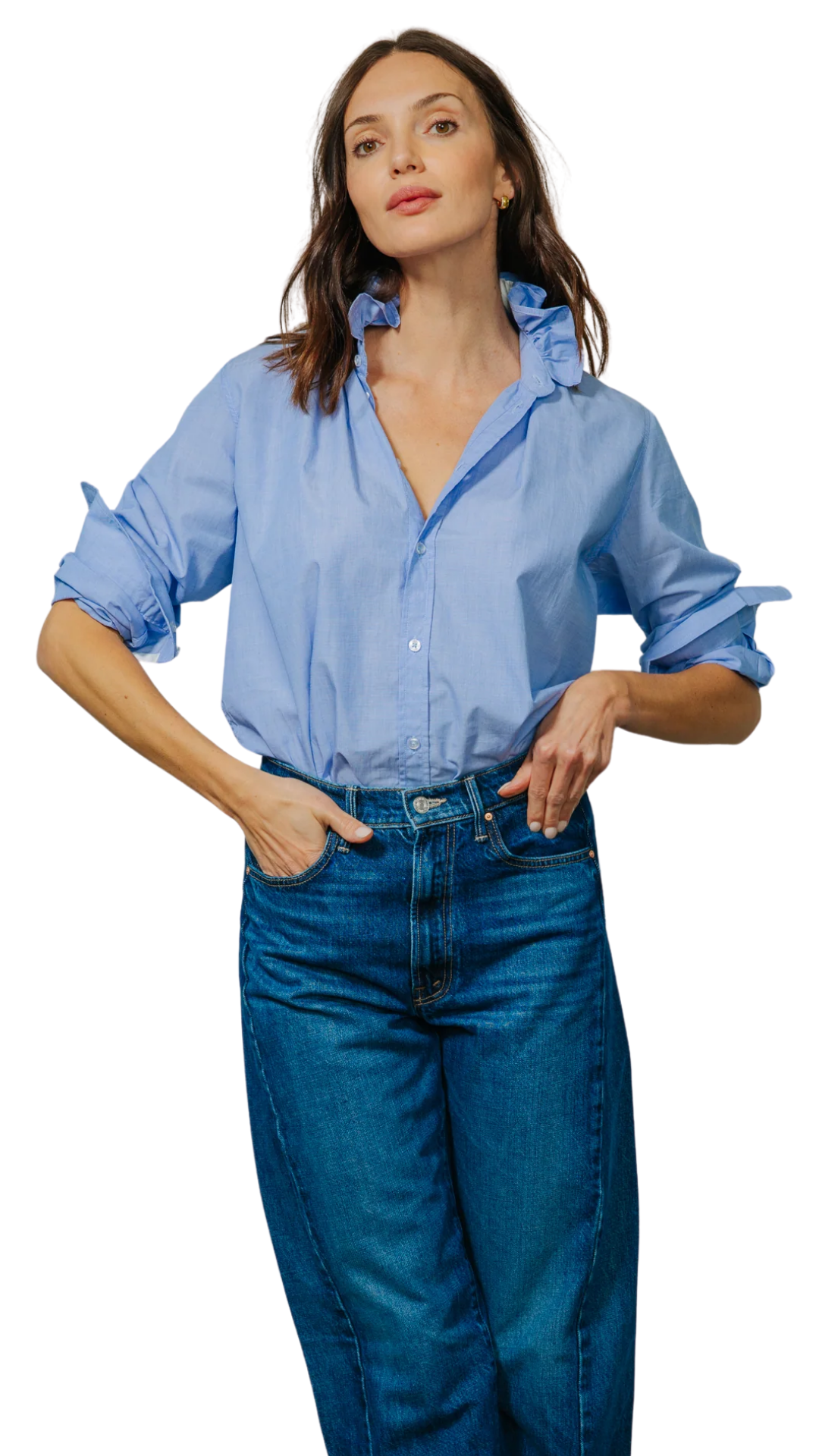 Our Quarantina Top offers the comfort of a boyfriend shirt with a touch of feminine flair, courtesy of our signature ruffle collar. Whether you opt to wear it buttoned down for a relaxed vibe, tied at the bottom for added flair, or tucked in for a polished look, Quarantina gives you the freedom to express your style with ease.