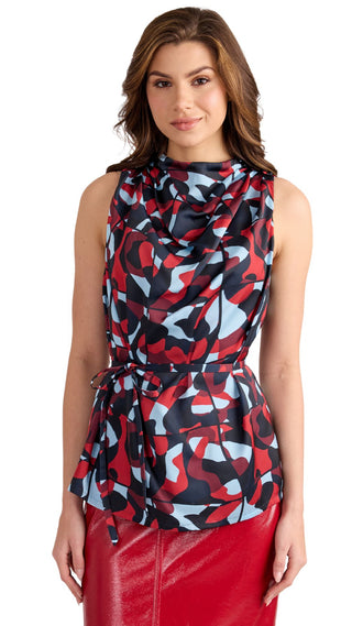 Aviana Lurex Stripe Poplin Tie Neck Sleeveless Top - Blue Multi