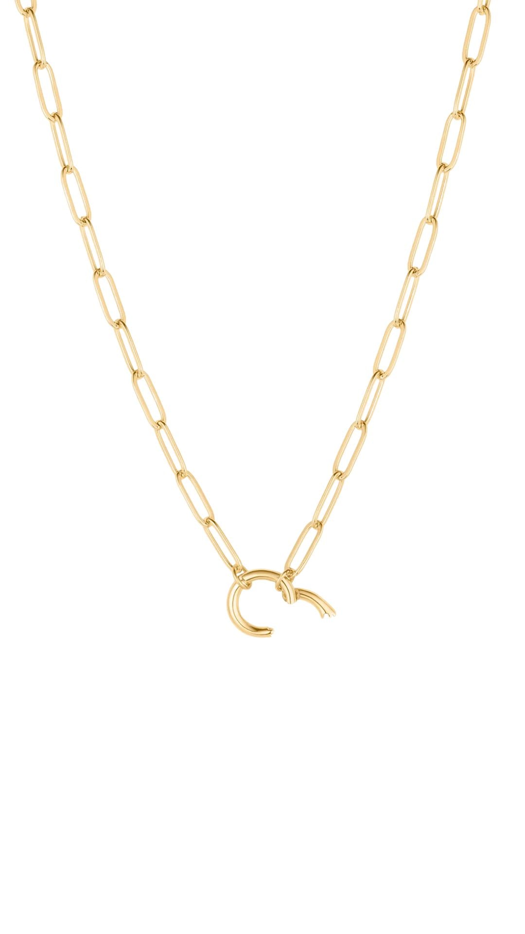 A minimalist link chain necklace in two lengths with a center hinge clip that fits all charms and pendants.