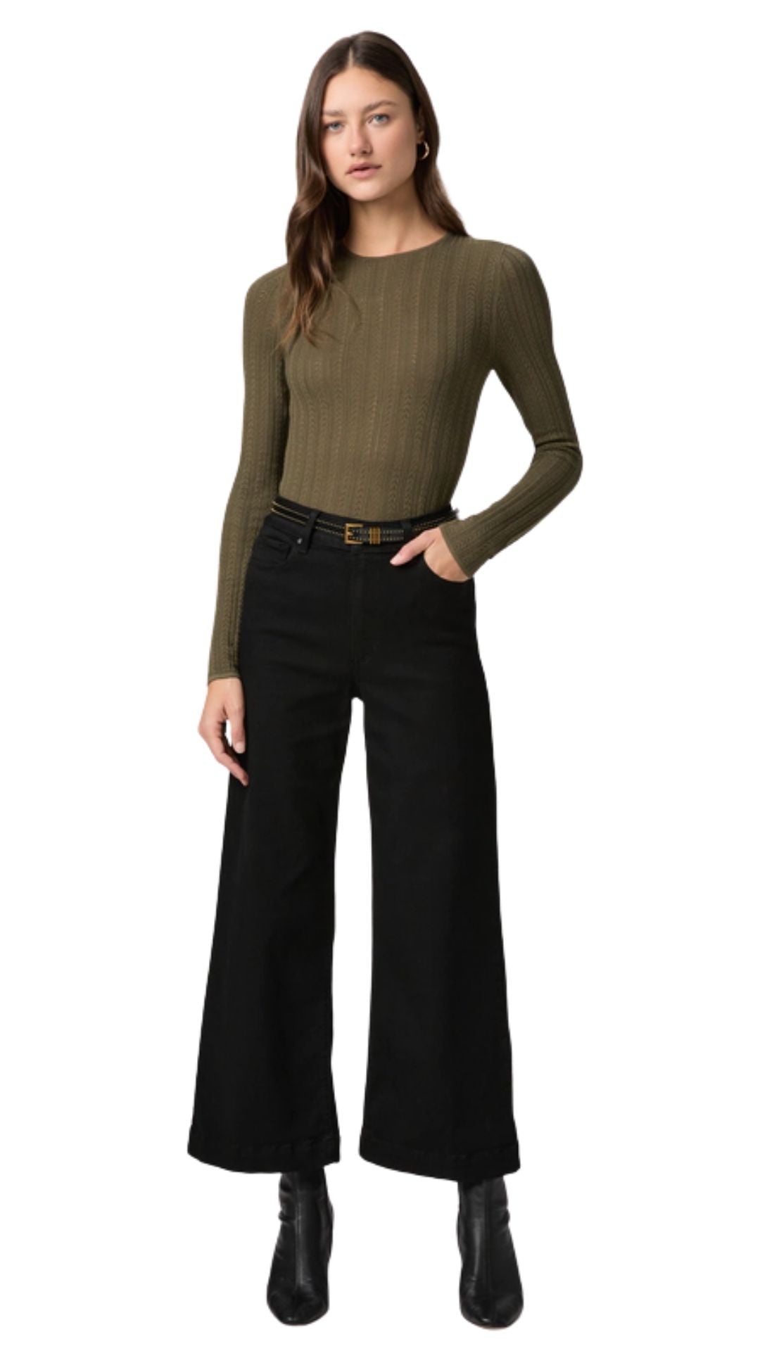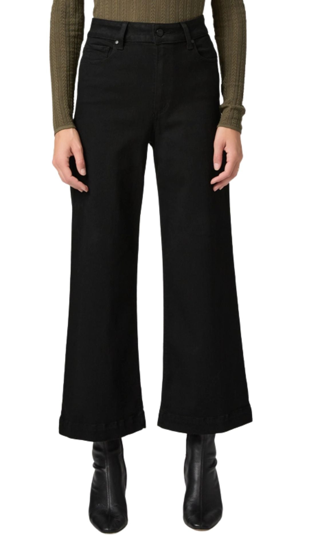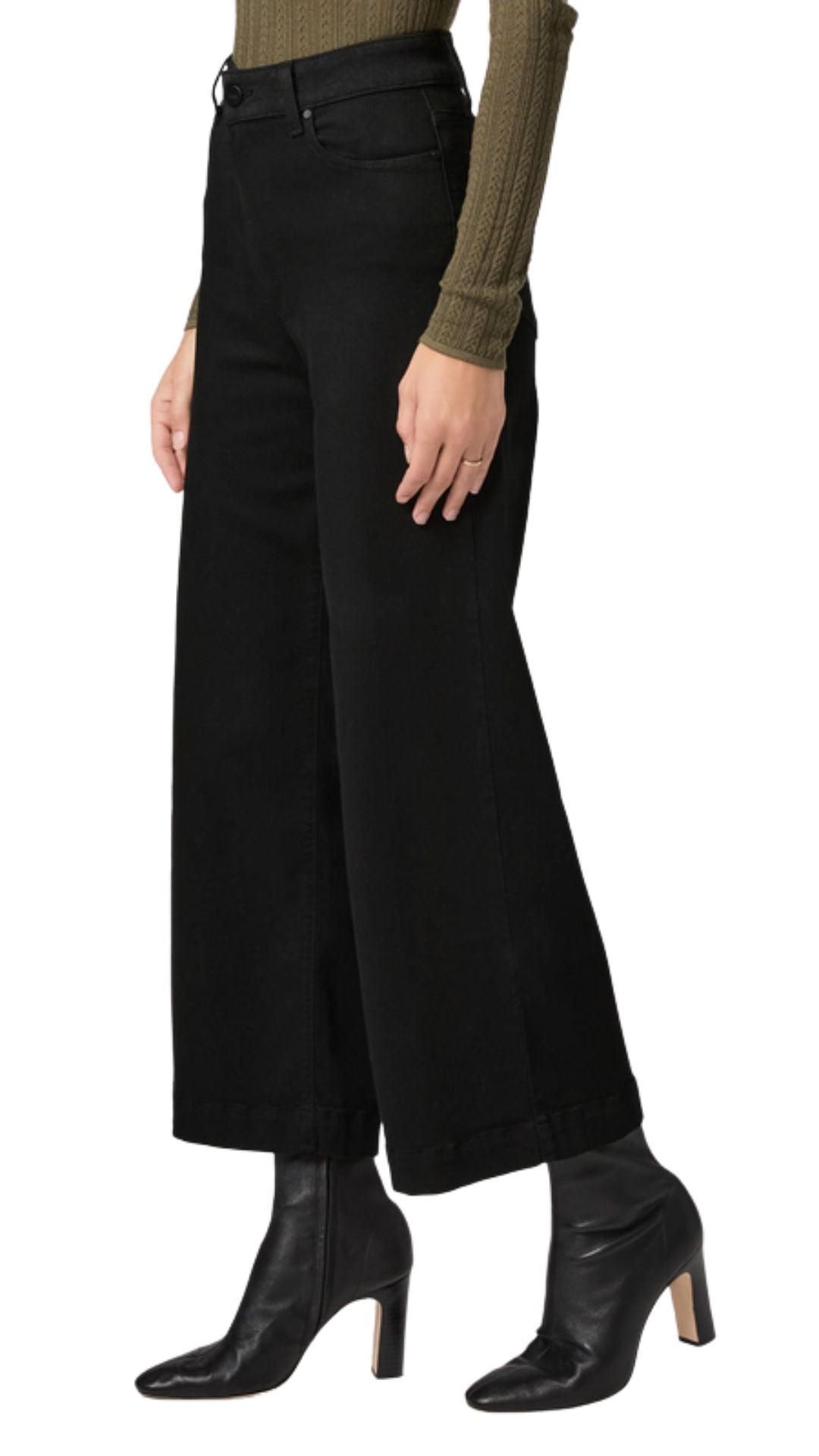 This high-rise wide leg has a slightly relaxed fit and an ankle length silhouette. In our best-selling black shadow wash, this pair is cut from TRANSCEND, the original high-stretch fabric that redefined comfort in denim.