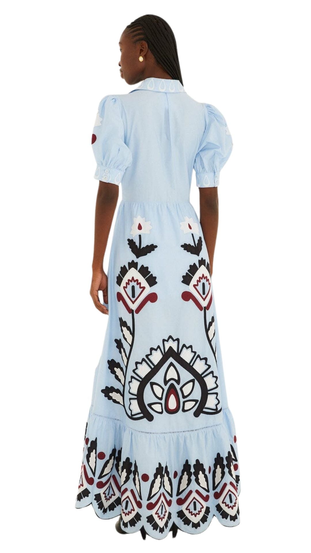 Embrace effortless elegance with the Blue Artisanal Embroidered Lace Front Bow Maxi Dress from FARM Rio. Crafted from 100% GOTS-certified organic cotton, this dress features a delicate V neckline and intricate hand-embroidered lace that dances across the bodice. The flowing silhouette is softened by a charming front bow, creating a playful yet graceful movement. Its deep blue hue echoes warm Brazilian sunsets, inviting a sense of joyful freedom and natural beauty.