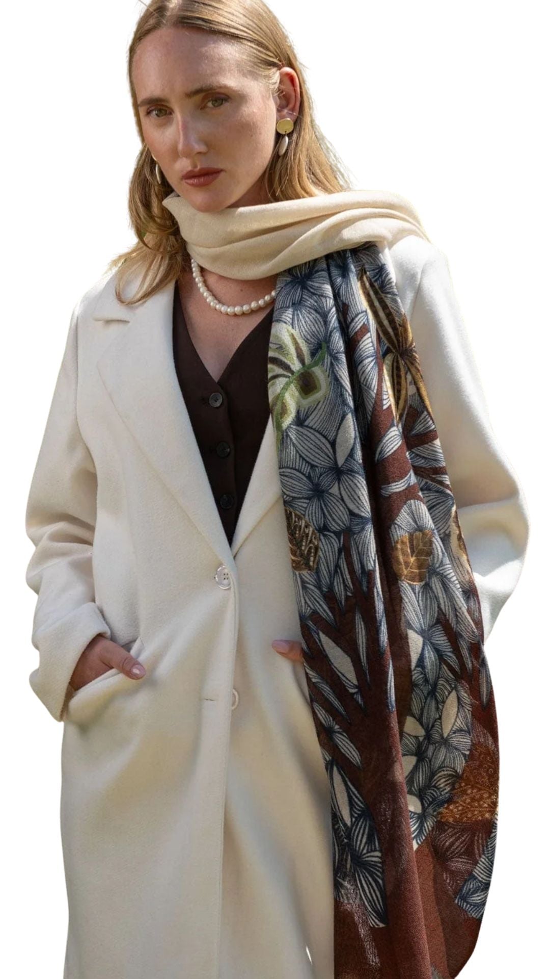 The playful tree pattern adds a touch of fun to any outfit, while the airy wool keeps you warm without feeling heavy.
