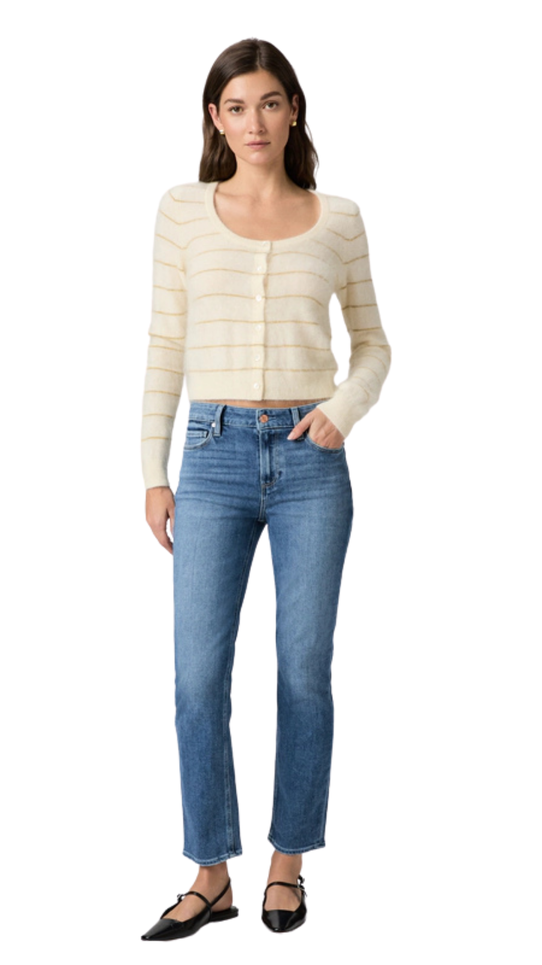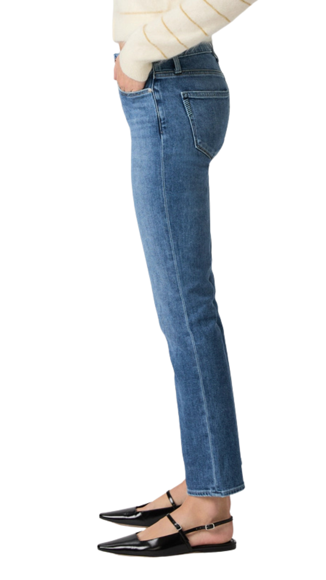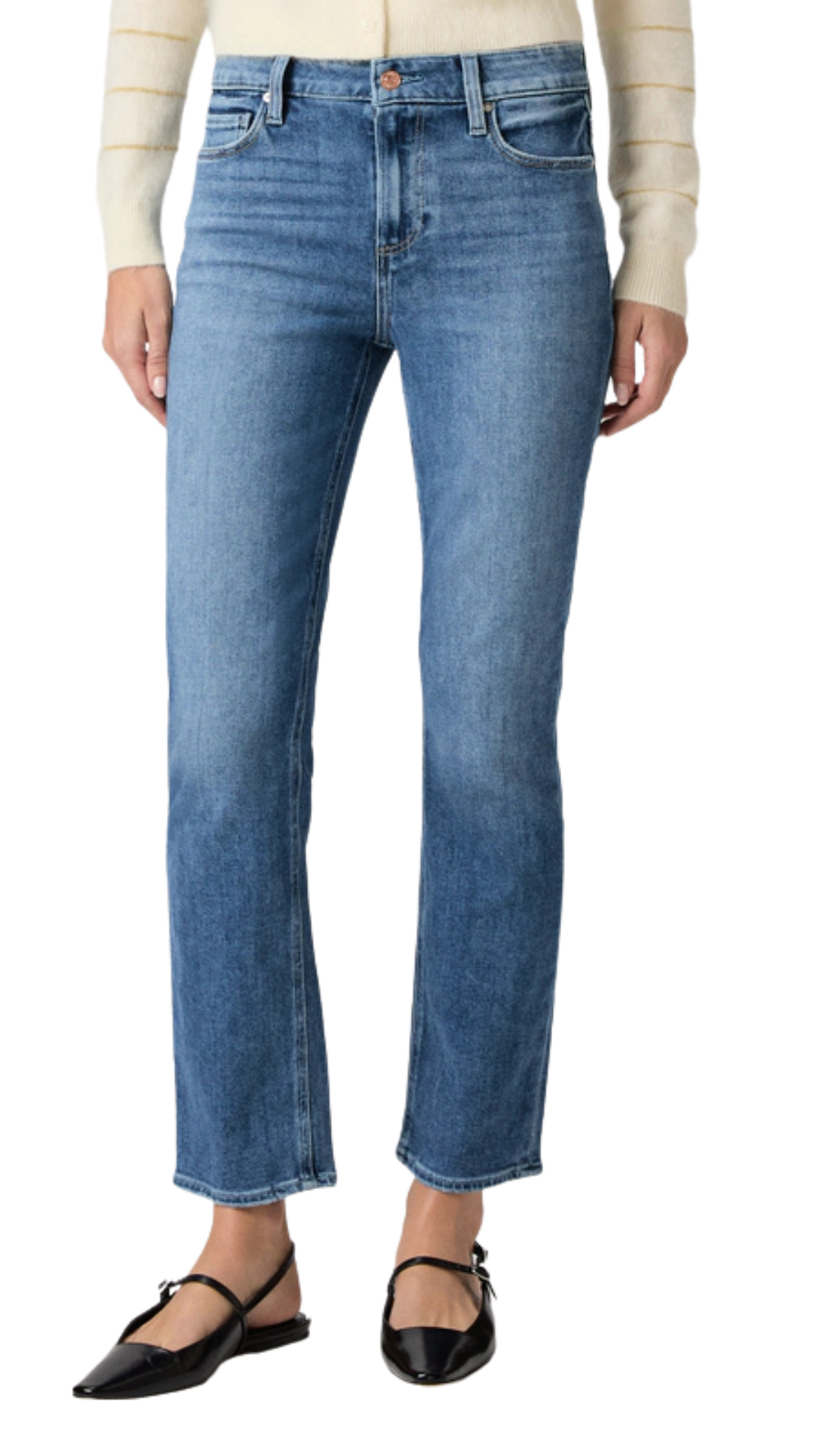 This high-rise, perfectly straight leg silhouette is lean through the leg and finishes at the ankle. Cut from our TRANSCEND VINTAGE denim in softly aged light/medium wash with a copper button and silver rivets, this pair combines the signature comfort of Transcend with rich denim character for a lived-in look.