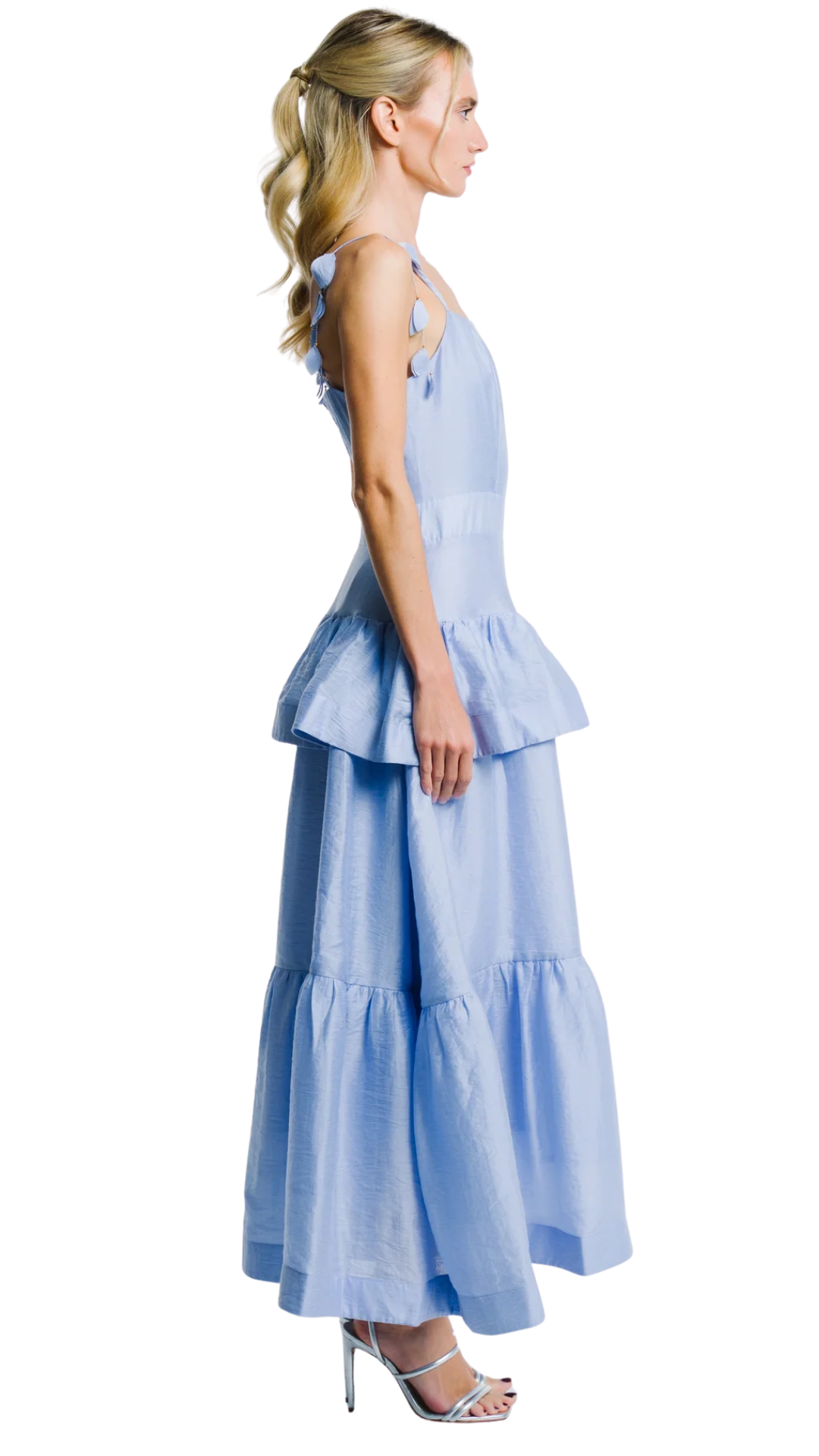 Ciebon Claudetta Flower Trim Ruffled Maxi Dress in iris blue.