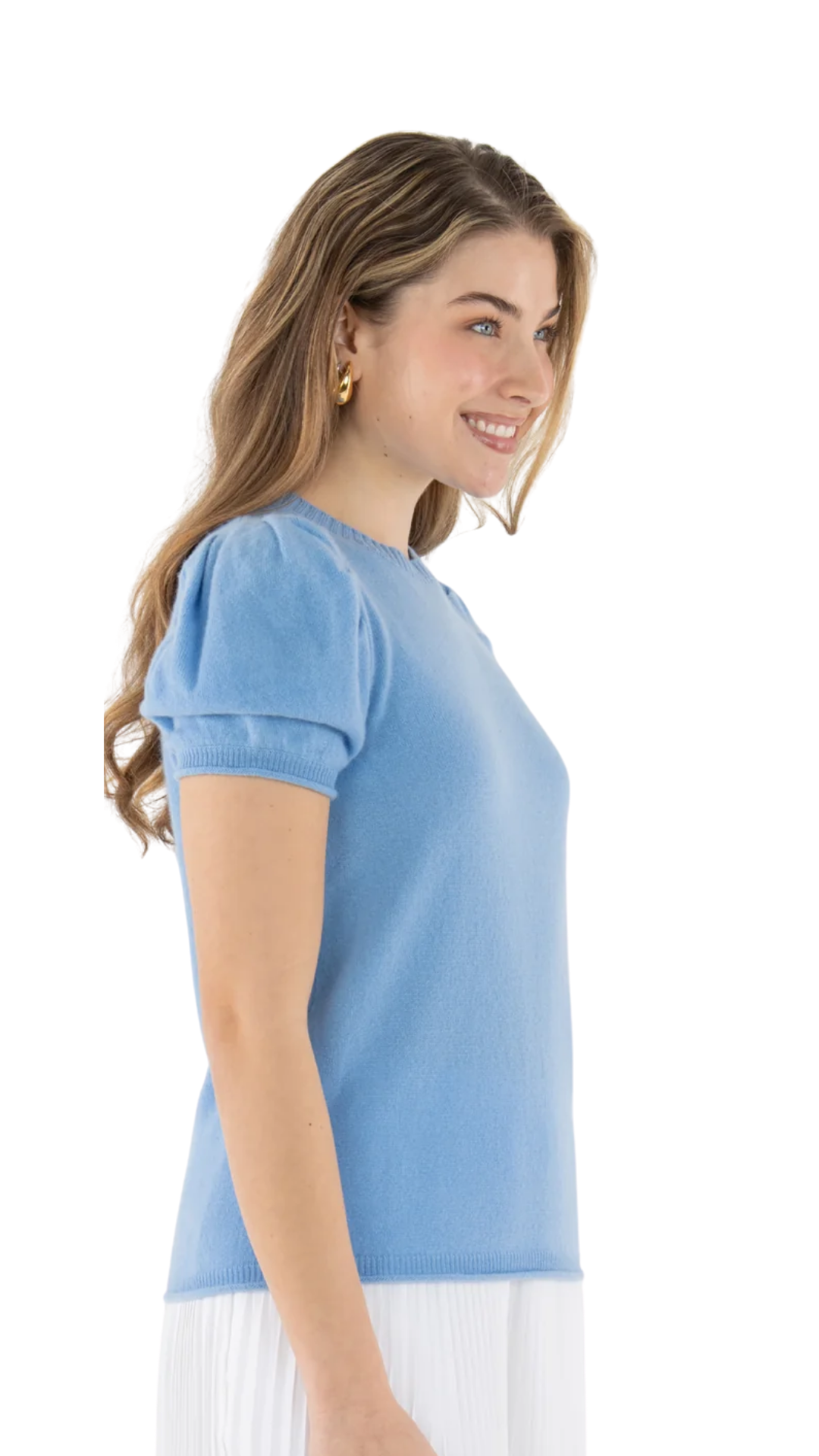 The Crewneck Knit in Nantucket Breeze is a foundational spring staple crafted in luxurious 100% cashmere. Featuring a classic crew neckline, softly puffed sleeves, and a subtly tailored silhouette, it offers an elevated yet easygoing approach to everyday dressing. Designed to be worn season after season, this knit blends enduring style with refined comfort.