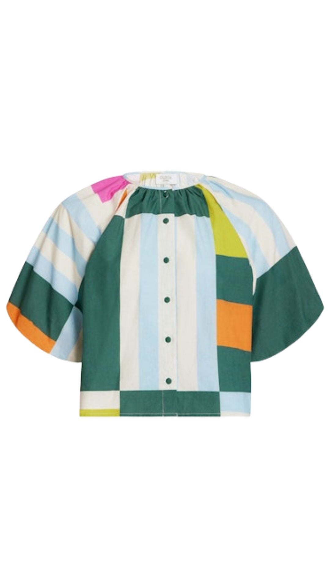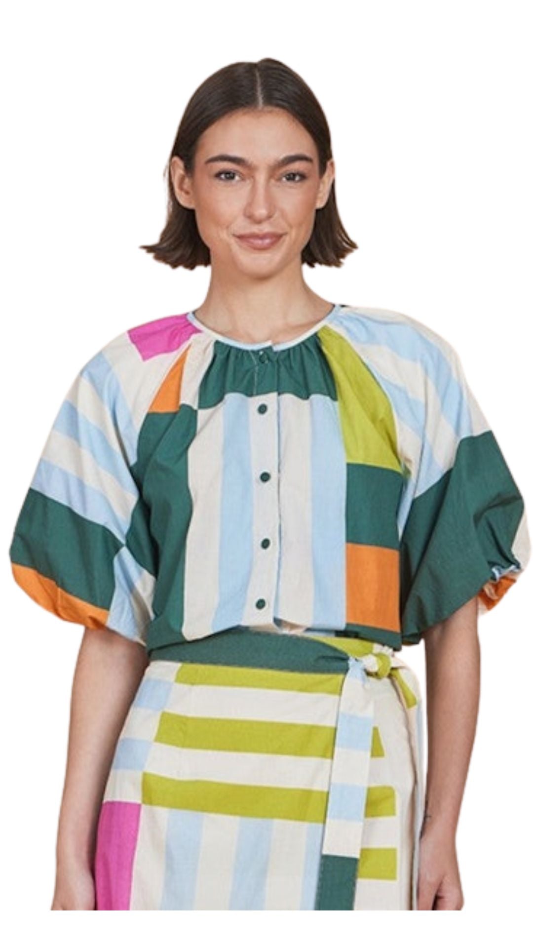An easygoing silhouette with statement appeal, the Frida Top features a relaxed fit, open collar neckline, and voluminous short sleeves. Pair it with matching separates or denim for a pulled-together, effortless look.