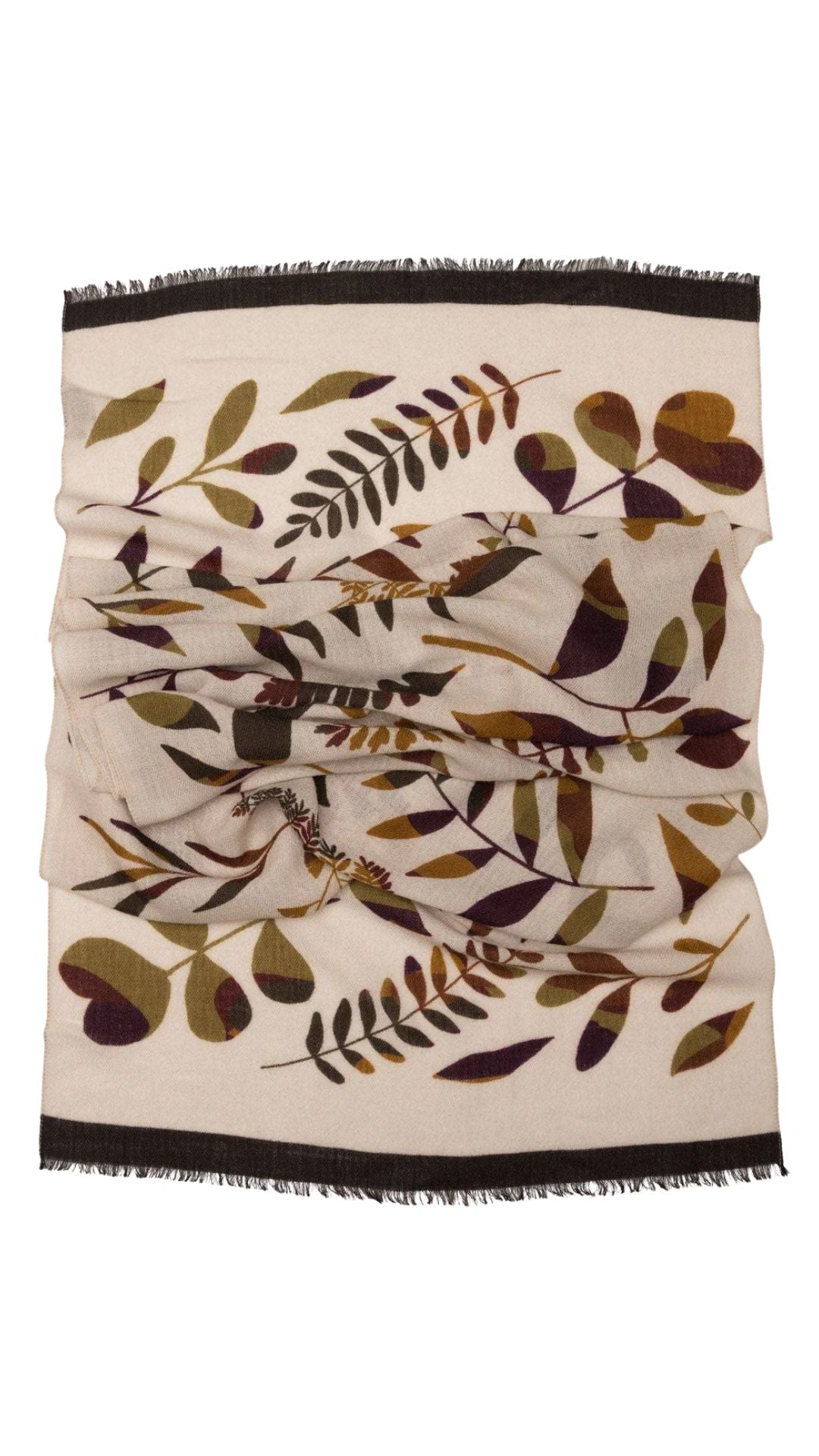 When the air turns crisp this is the layer you’ll reach for. Woven from airy wool with a fluid drape, it’s oversized enough to style as a shawl, yet light enough to knot, twist, or throw over one shoulder without bulk. The print? A modern take on nature — abstract leaves in unexpected colors. wear it over a tee. A sweater. A coat. It works with all of it. And it folds down to nothing when you don’t need it. Details * Large size: Approx. 21" x 74" (55 x 190cm). Wide enough to bunch, scrunch or leave hanging loose for a decorative accent, and long enough to wrap or tie any way you choose. * 100% soft wool: Made from the lightest, softest wool twill.