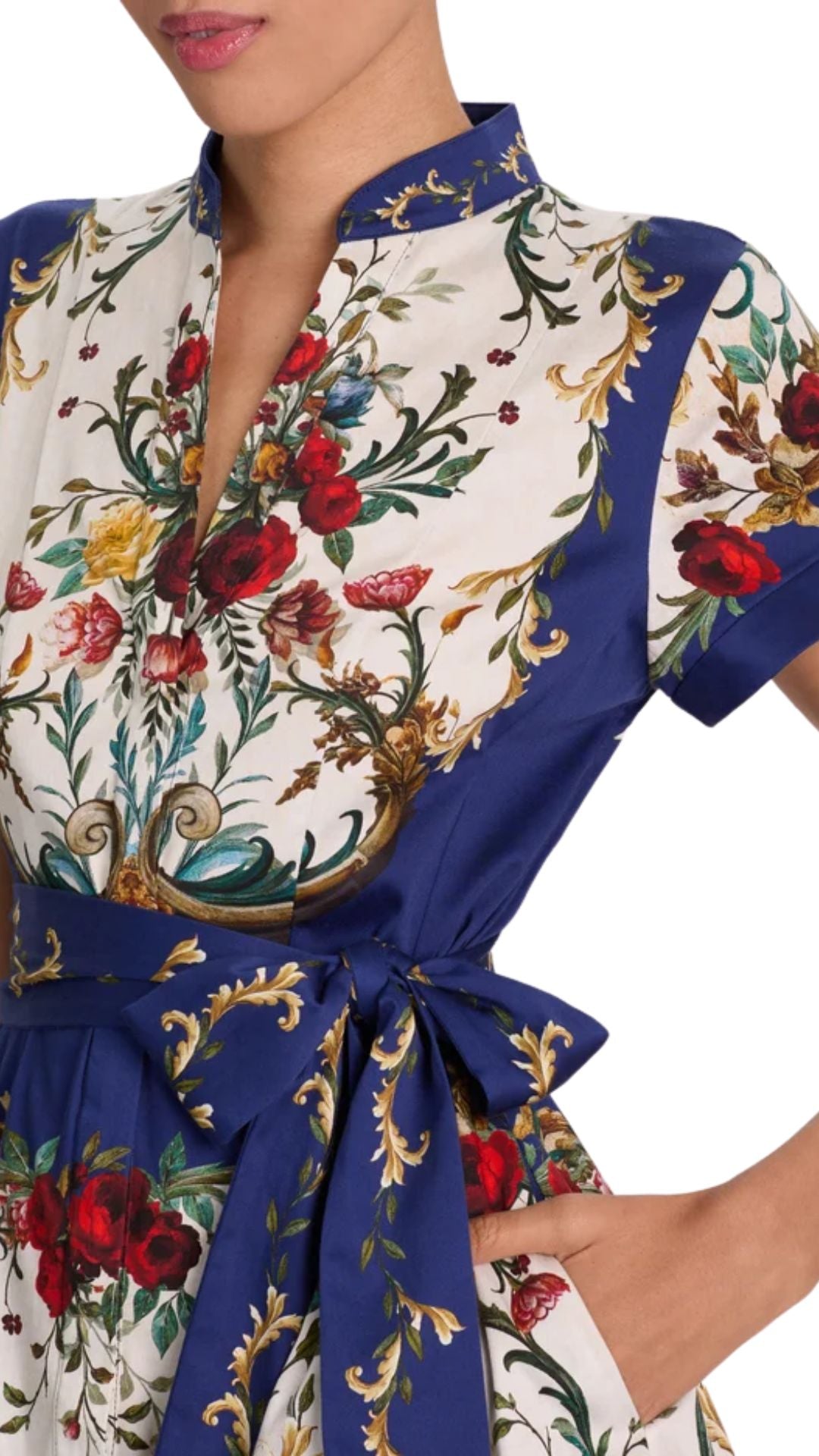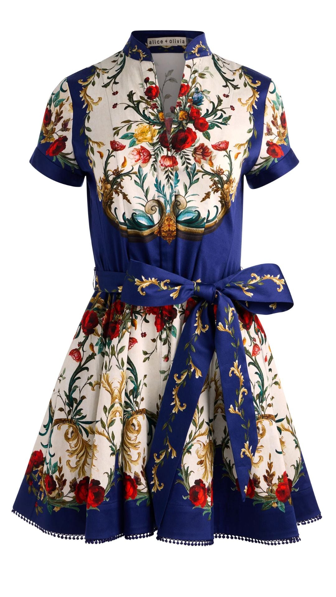Our cult favorite Lucy is back! This patterned mini dress keeps the classic button down front and collared neckline you know and love, but adds a breezy skirt with pom-pom trimming for movement. Soft cotton poplin makes it breathable, while the hidden placket and subtle print keep it refined. It’s your everyday uniform--upgraded.
