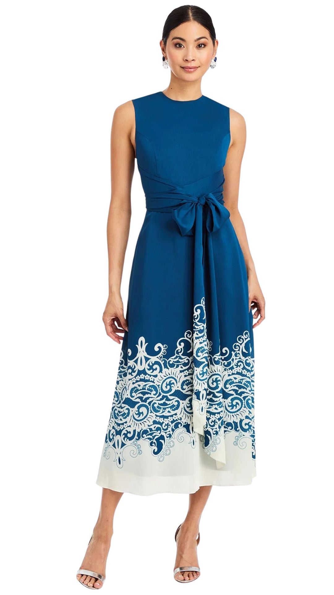 The Nolita Wrap Dress is your go-to look for day-to-night dressing with a polished twist. Designed in structured twill with a navy and ivory Chantilly lace print, this sleeveless midi features a flattering adjustable wrap waist detail, princess seams, and a full skirt that moves beautifully from daytime brunches to evening cocktails. The classic crew neckline and fold-over hem add timeless versatility to this elevated fall silhouette.