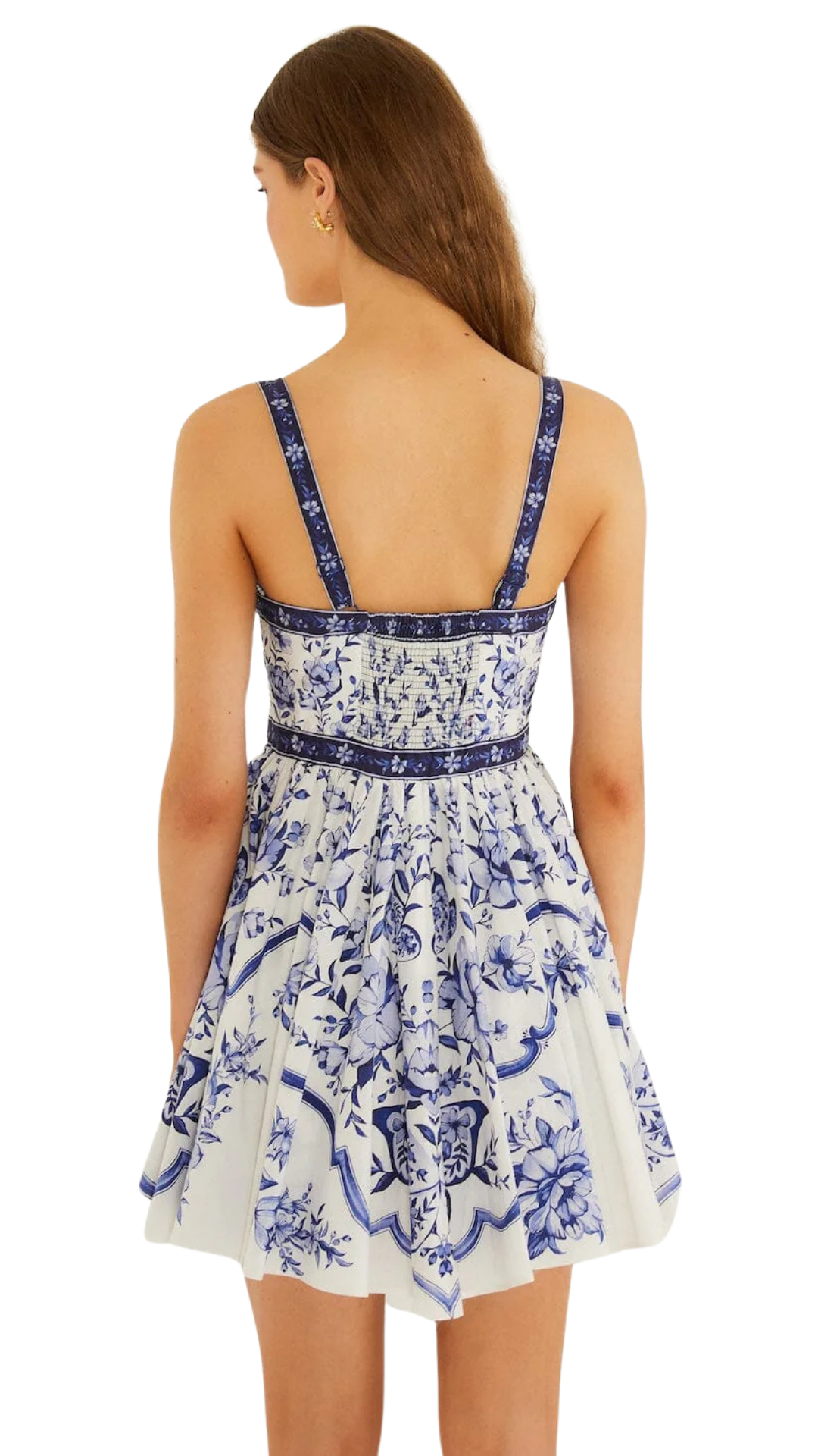 Breathe in effortless charm with the Off-White Porcelain Garden Mini Dress by FARM Rio. Crafted from GOTS-certified organic cotton, its soft off-white fabric blooms with delicate, hand-painted floral patterns. The square neckline frames your décolletage gracefully, while the buttoned front and subtly gathered waist sculpt a playful yet feminine silhouette. This dress blends sustainable beauty with timeless ease, inviting warmth and joy into every step you take.