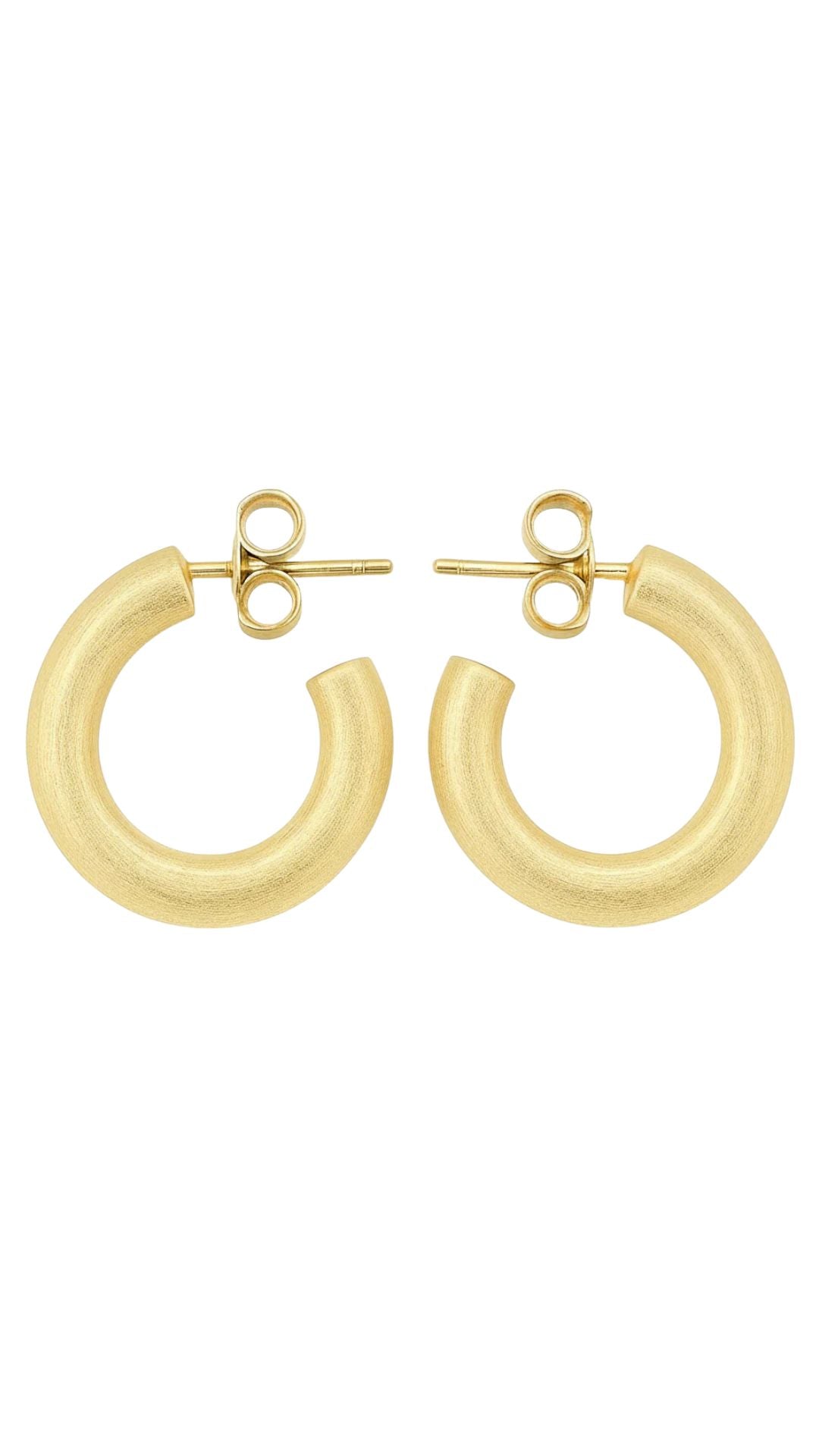 Handmade in Brazil. Meet the sleeker sister to our beloved Small Chantal Hoops. Handcrafted in Brazil, these lightweight, thinner hoops bring the same signature glow and effortless sophistication—with a slightly more delicate silhouette. Perfect for everyday wear or elegant layering, they deliver timeless style with a whisper of edge.