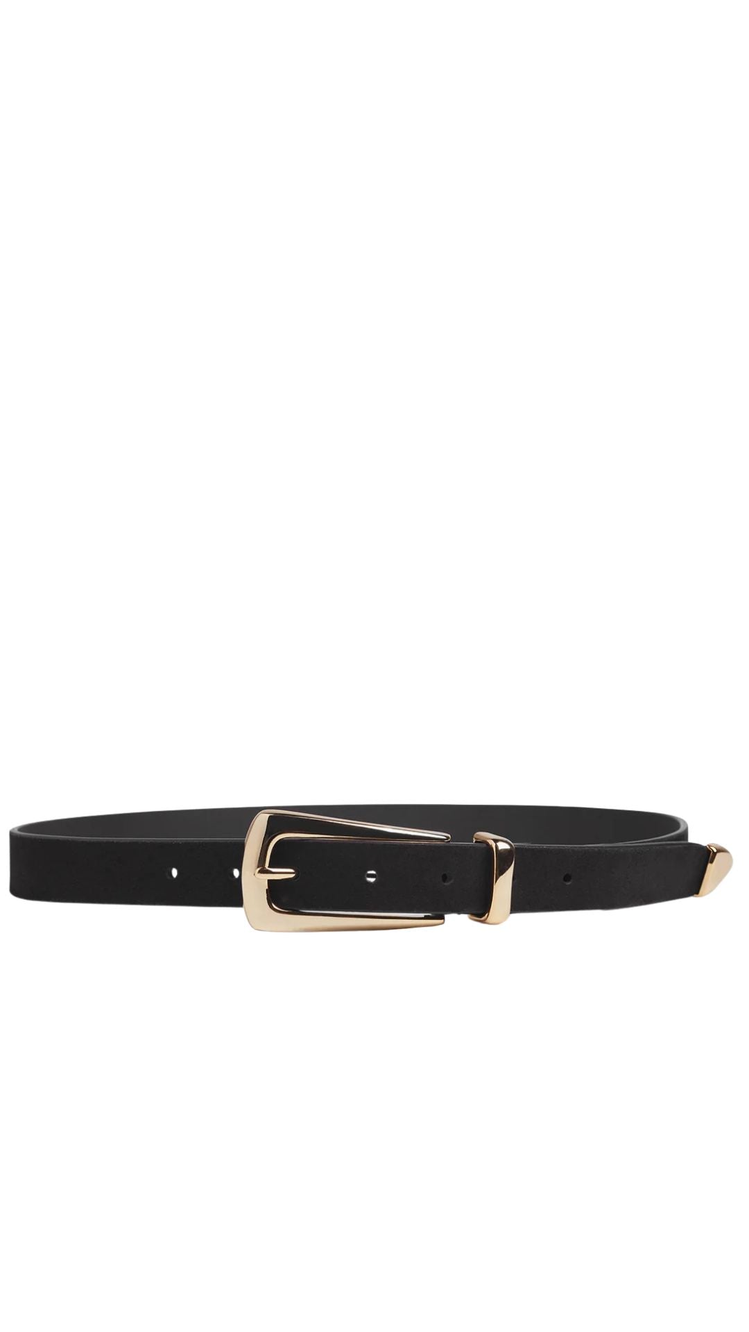 Crafted from black suede, The Statement Belt's 25mm flat strap has a leather lining and seven prong holes for a sleek look with extra adjustability. Our favorite part is the polished gold hardware that makes every outfit a statement.