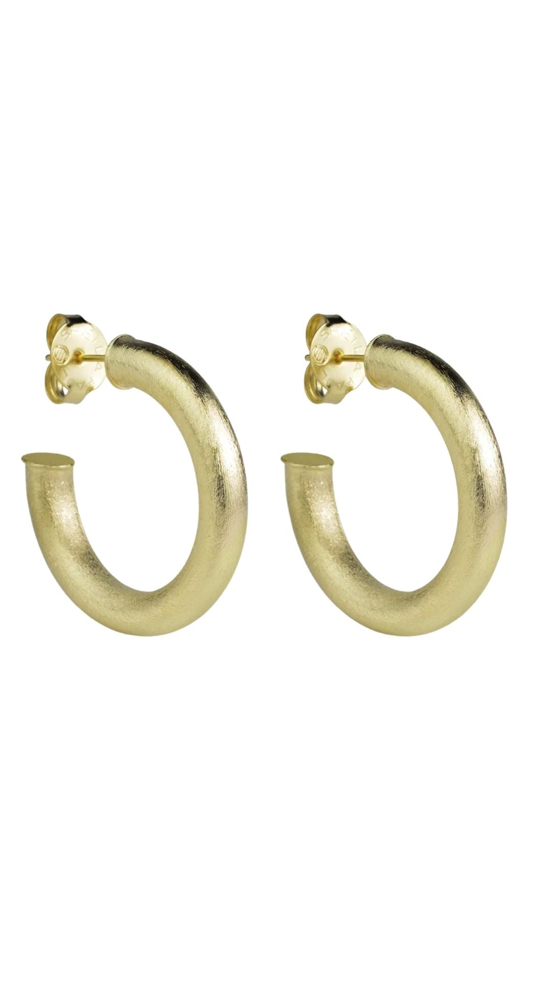 Handmade in Brazil. You asked, we listened. This Thinner version of our Small Chantal Hoops will be one of your Sheila Fav's. Easy to wear with everything and Hand Brushed to emit a beautiful glow!